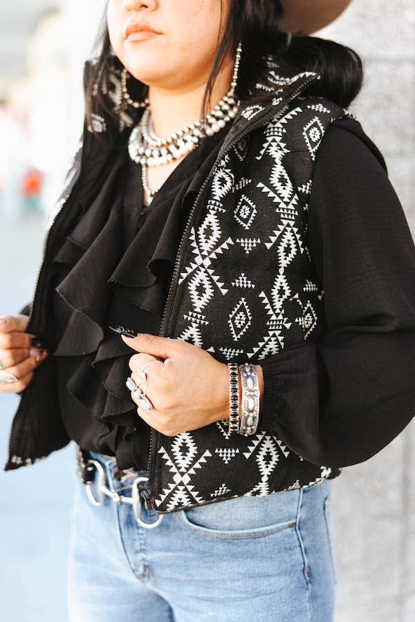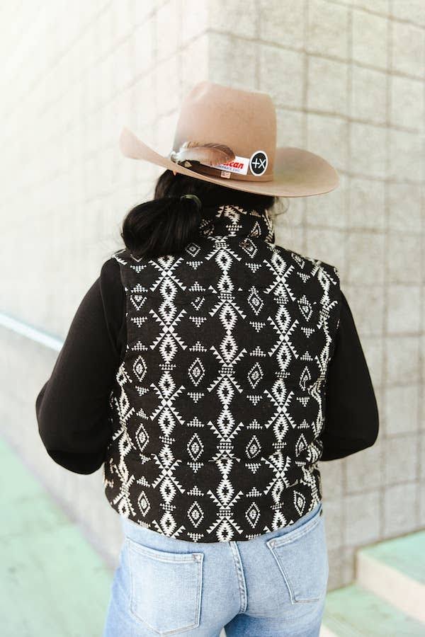 Black Aztec Woven Zip-Up Sleeveless Puffer Vest