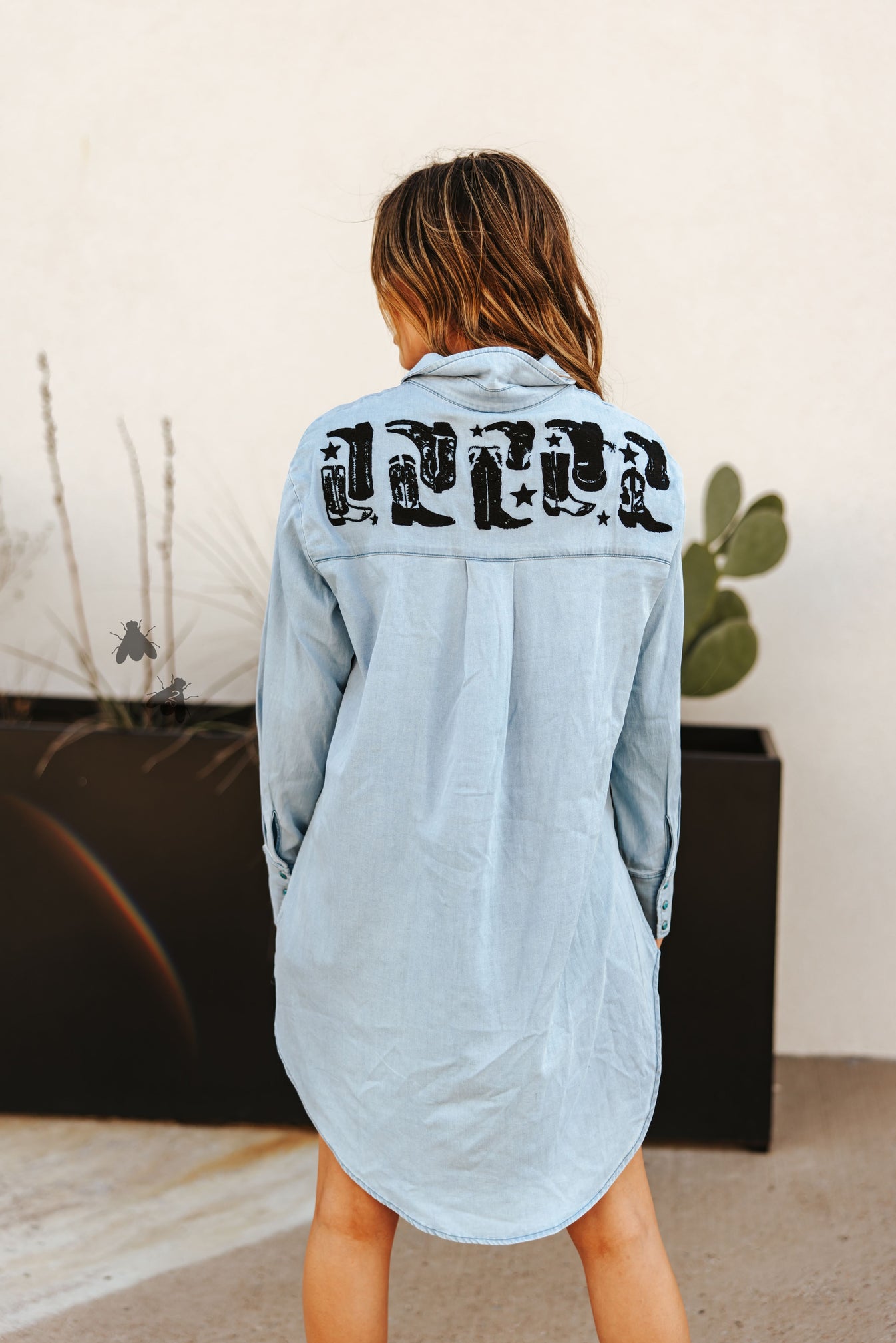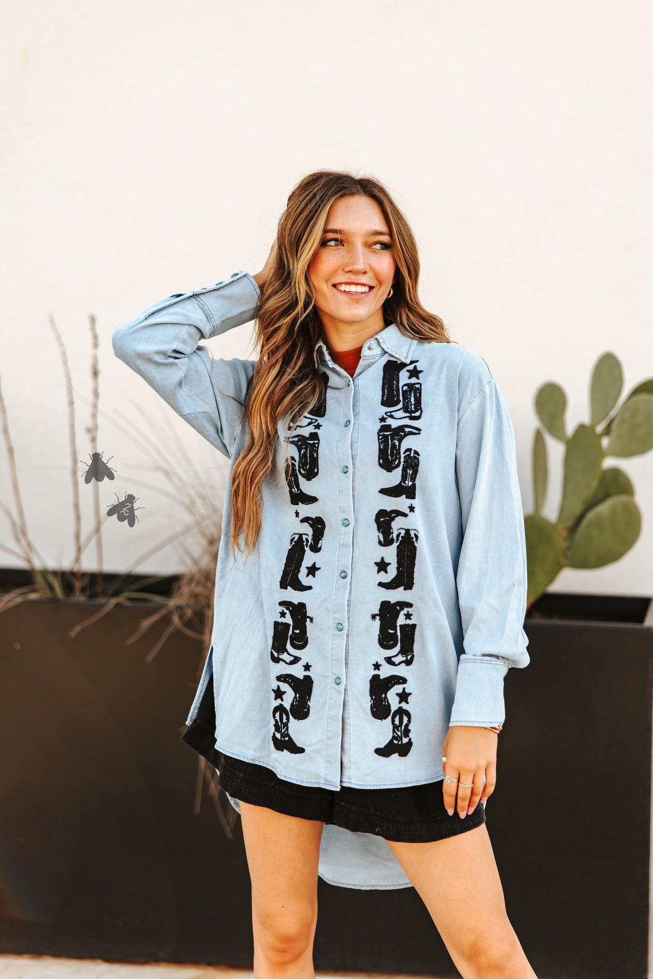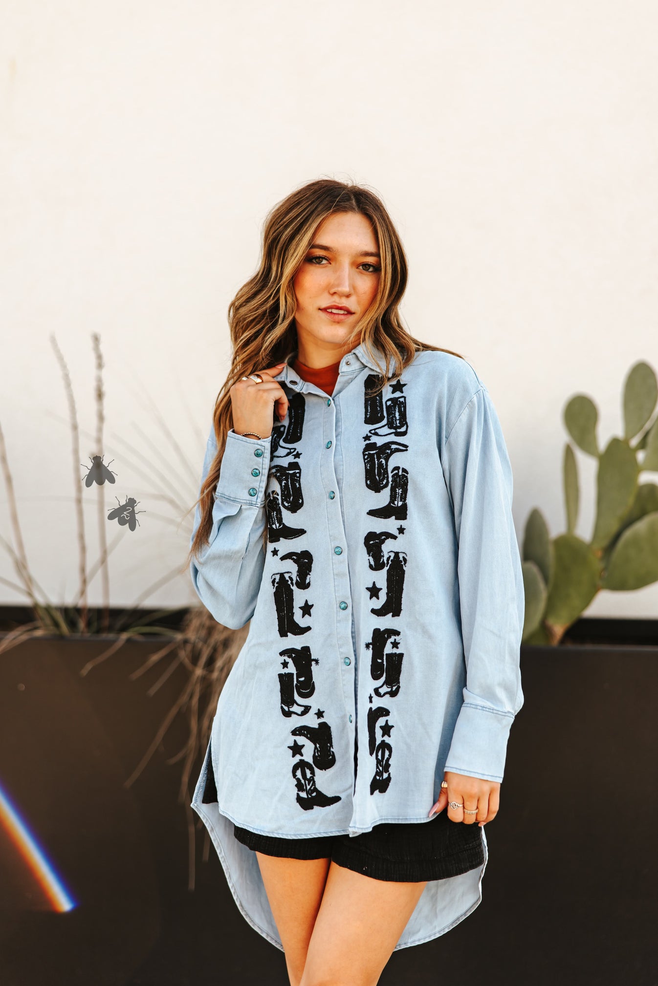 boot yeah is denim & embroidery goodness. this hi-lo button up will NOT disappoint.
