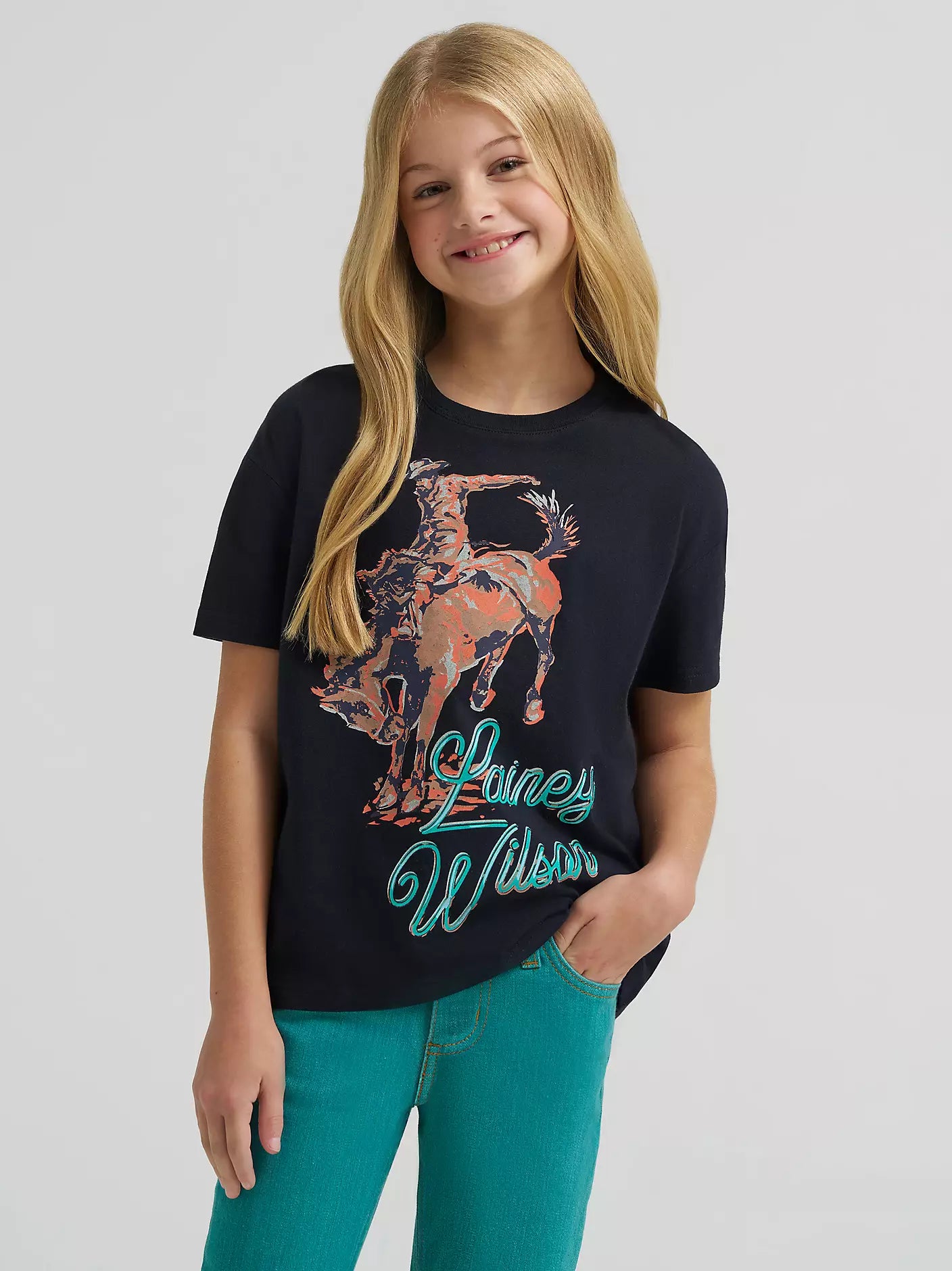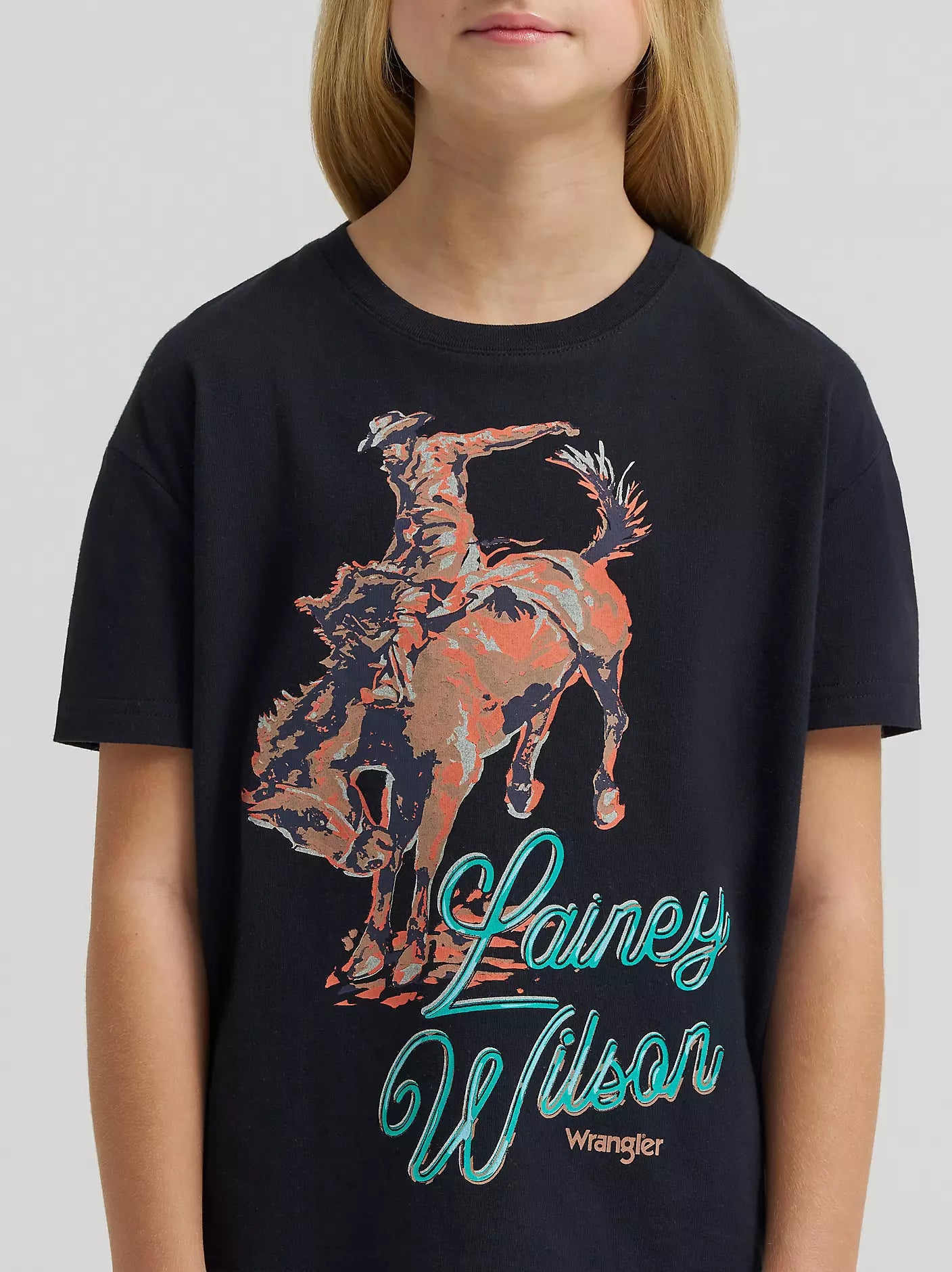 From backroads to big dreams, the Girls’ Lainey Wilson x Wrangler® Oversized Tee is made with your cowgirl in mind. Designed with a classic crewneck silhouette, it delivers that easy, laidback vibe she loves. On the back, the lyrics “work don’t work without your back in it” add a playful nod to Lainey’s song “Broken Hearts Still Beat," while the front showcases a vintage-inspired bronc rider graphic. With Lainey’s signature on both the front and the back, this tee is perfect for all the adventures ahead.