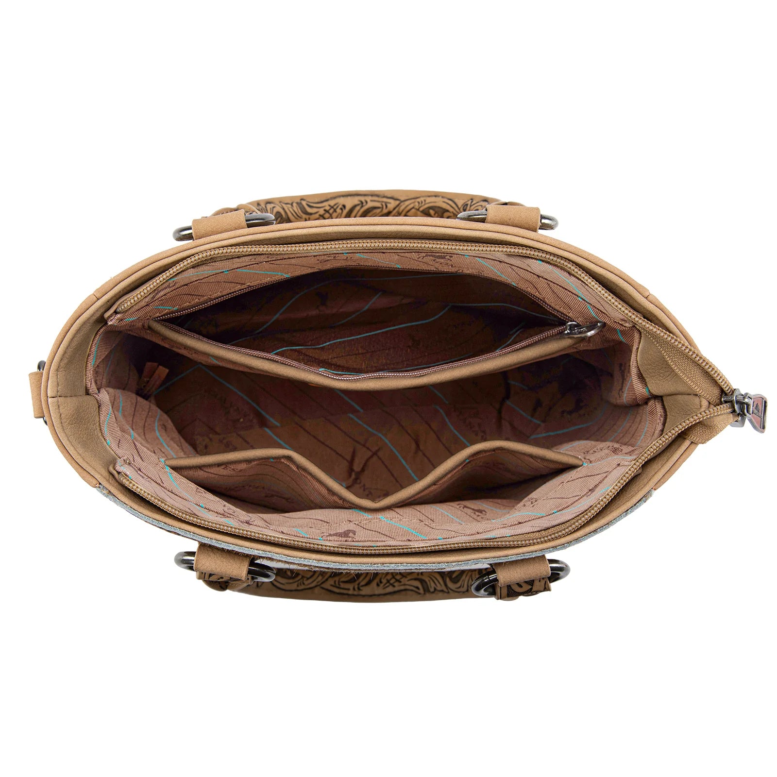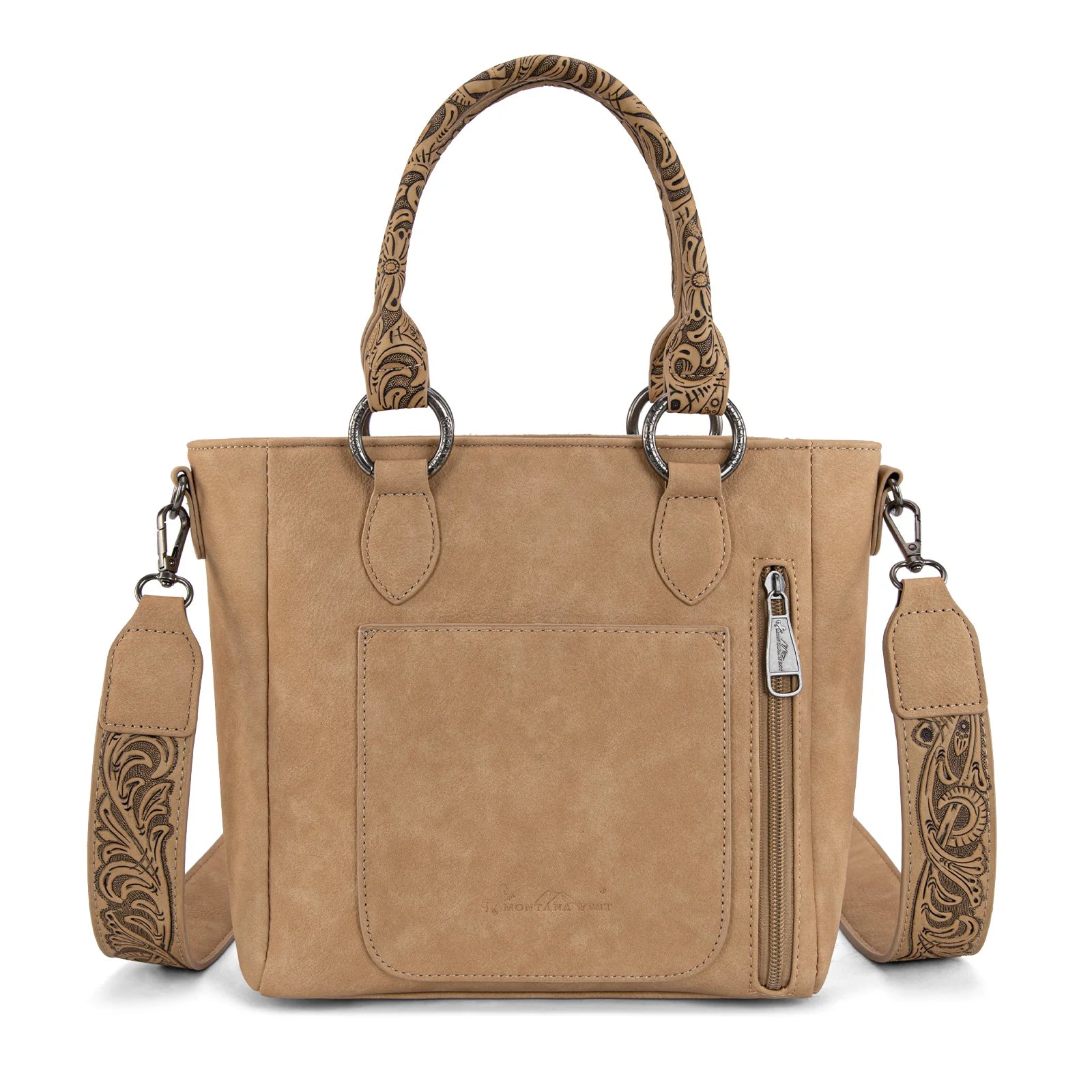 • Intricate floral tooled top handles (Drop 6")