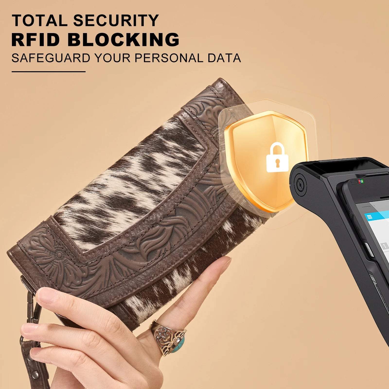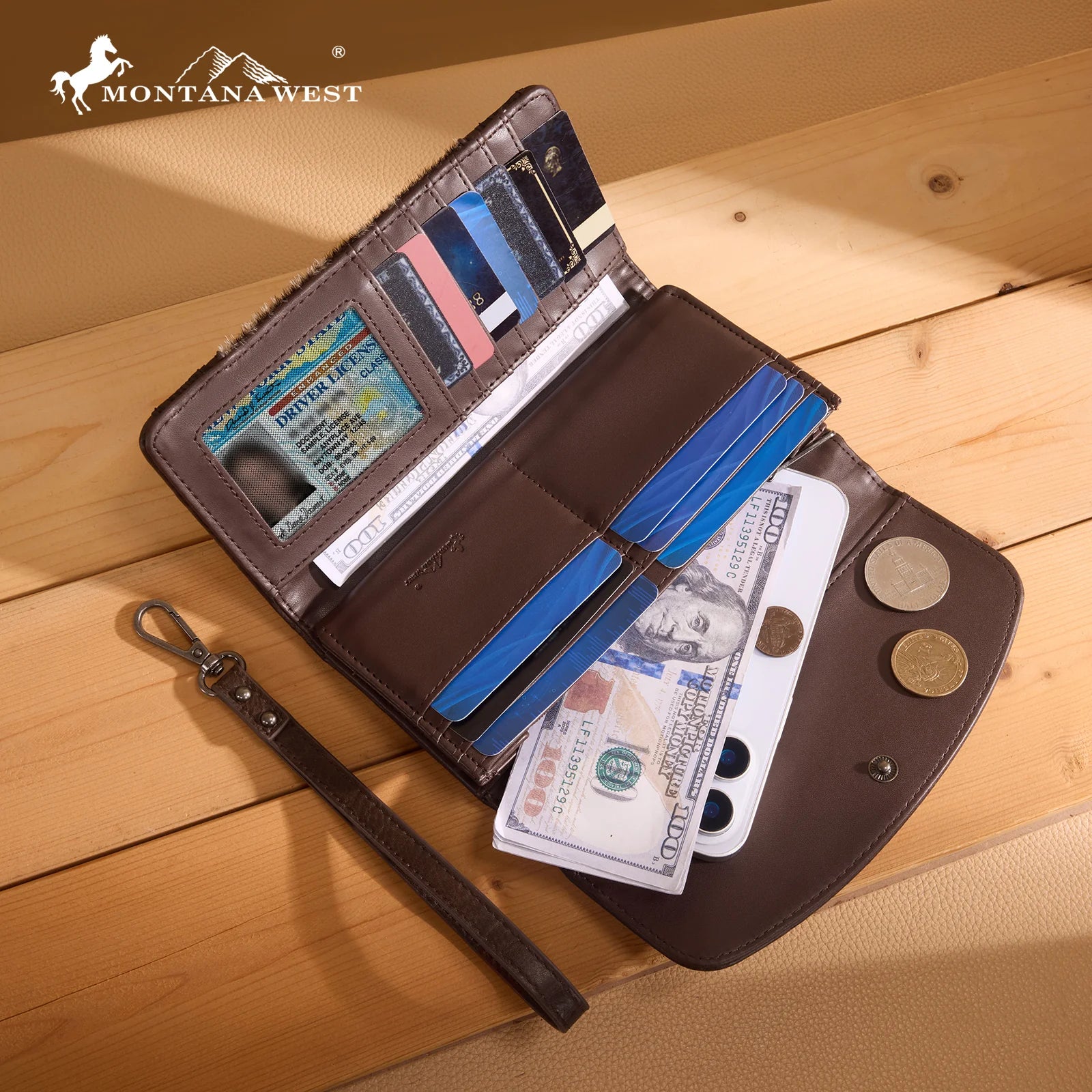 Montana West Hair-On Hide Tooled Wallet – Western Wristlet - Coffee