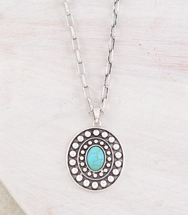 Turquoise Stone Concho Pendant Necklace
