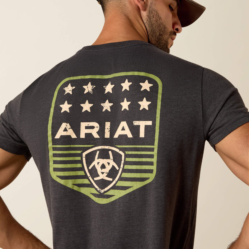 ARIAT MENS STRIPE PATRIOTIC BADGE TSHIRT - HEATHER CHARCOAL