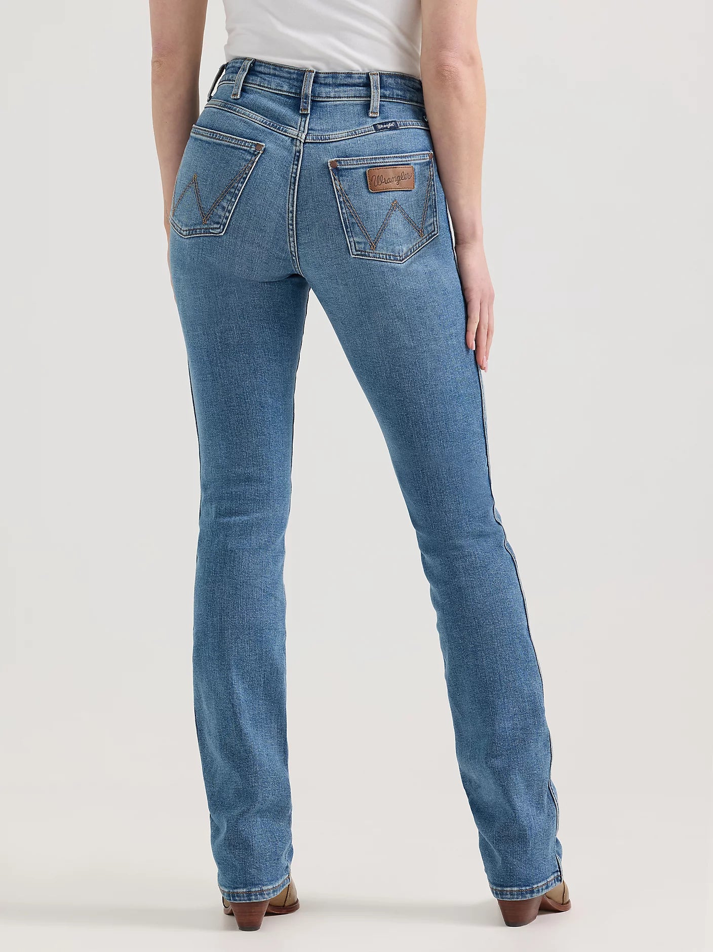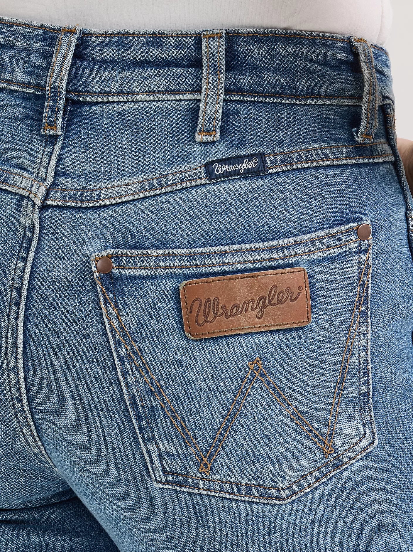 Trends may come and go, but the bootcut is forever. Our Women’s Wrangler Retro® Bailey High Rise Bootcut Jean sets the bar high with a waist-nipping silhouette, a close fit through the thigh, and a slightly flared 17” leg opening that goes perfectly over boots. It’s crafted from cotton with just a subtle amount of stretch for comfort. Plus, the signature five-pocket styling, “W” stitching, and rope logo patch deliver the Western authenticity you want.