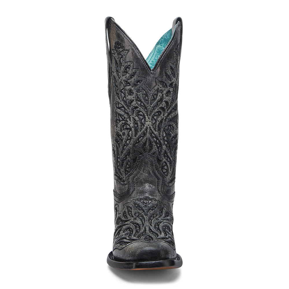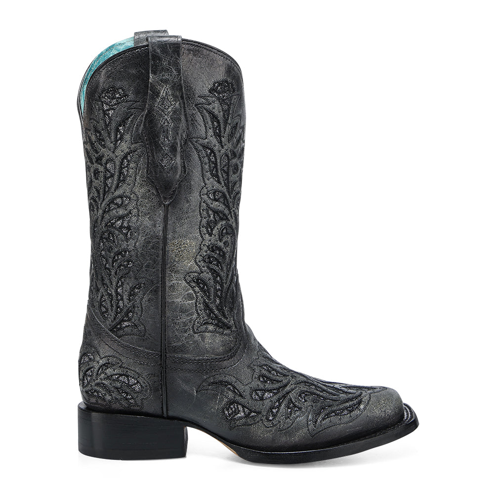 CORRAL WOMEN'S BLACK GLITTER INLAY & EMBROIDERY SQUARE TOE COWBOY BOOT - A4876