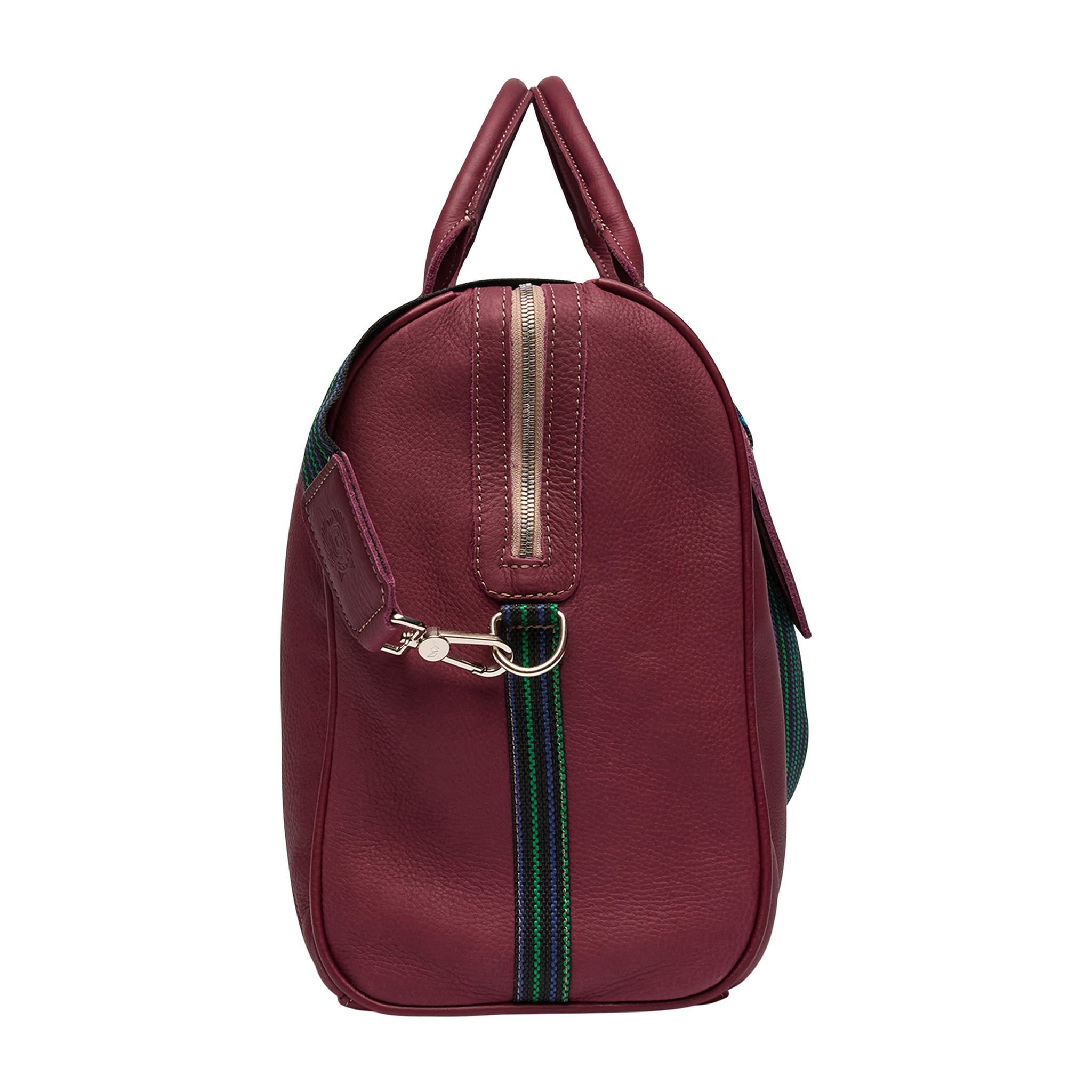This spacious and colorful duffel is the perfect carry-on for a weekend getaway, making a statement with functionality, durability, and style. Topped with natural leather handles and an adjustable webbing strap, the Jetsetter is crafted to hold its shape and makes traveling easy with ample interior storage and functional pockets.