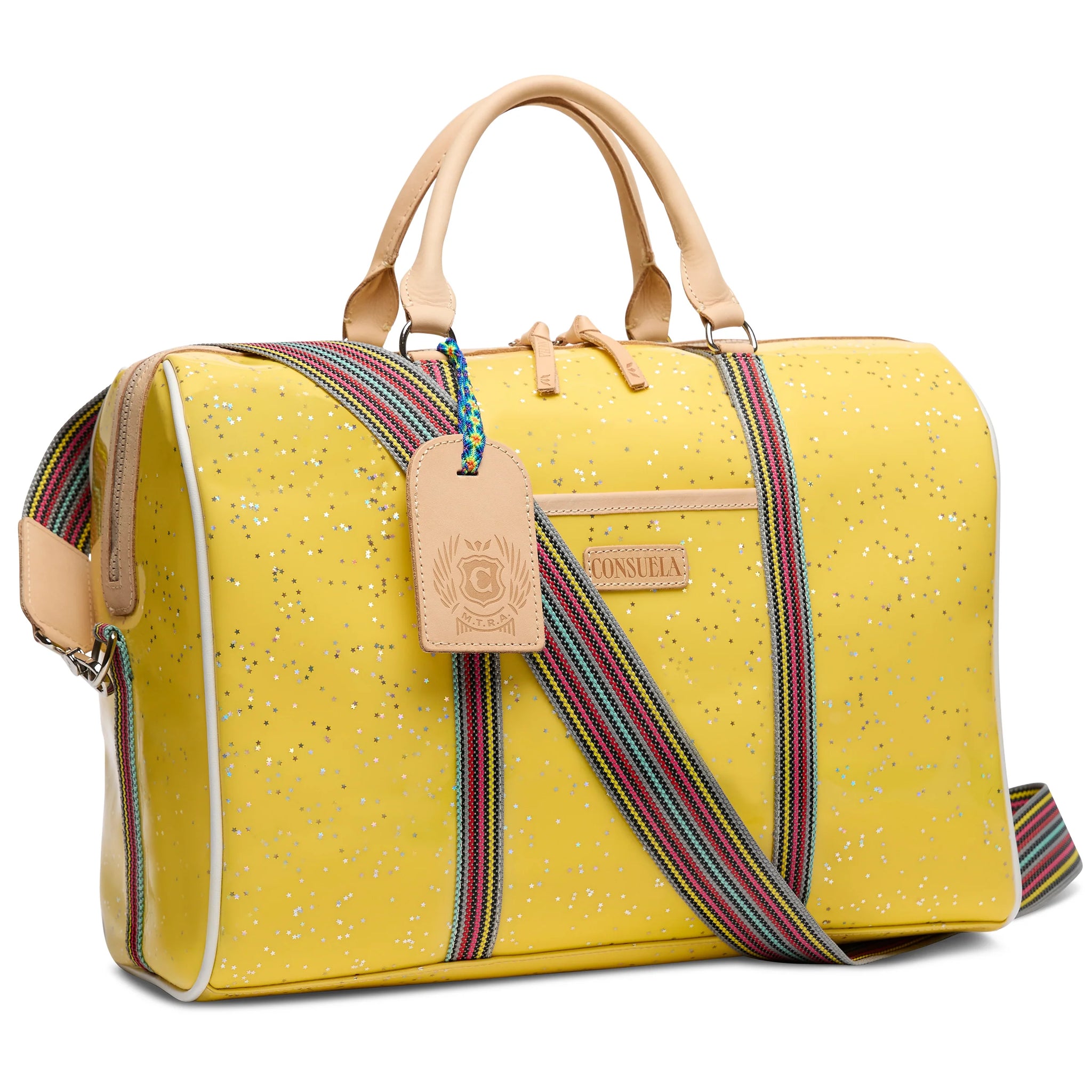This spacious and colorful duffel is the perfect carry-on for a weekend getaway, making a statement with functionality, durability, and style. Topped with natural leather handles and an adjustable webbing strap, the Jetsetter is crafted to hold its shape and makes traveling easy with ample interior storage and functional pockets.