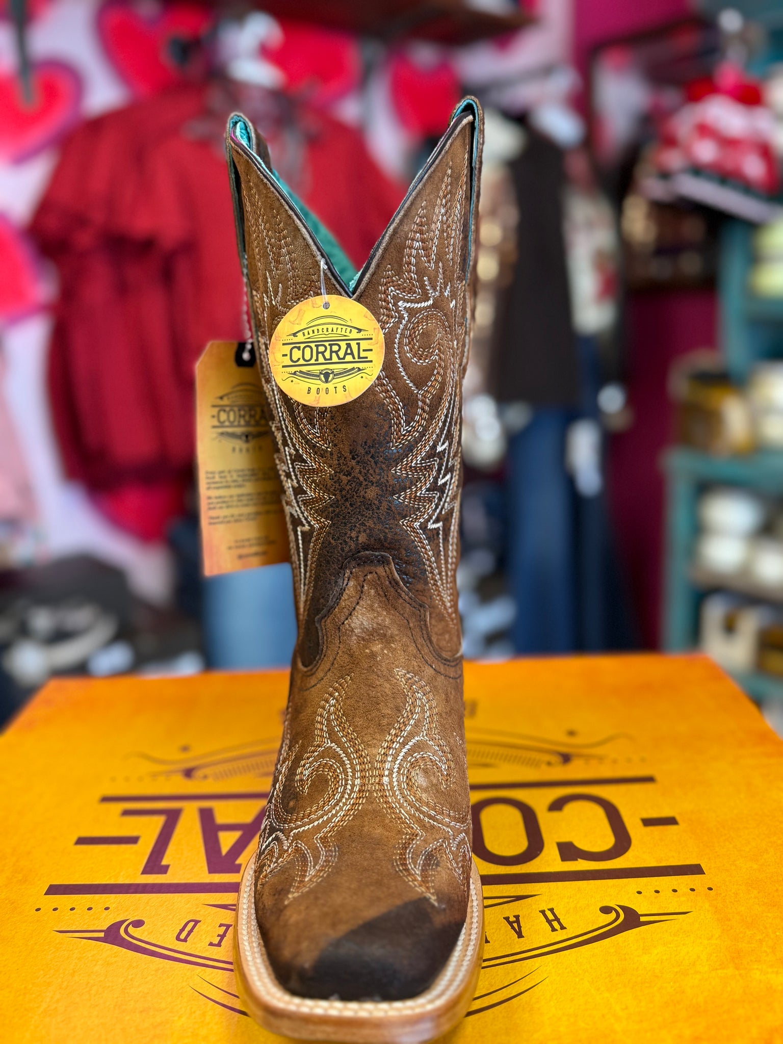 CORRAL WOMEN'S BROWN FLAMES EMBROIDERY SQUARE TOE WESTERN BOOT - Z5442