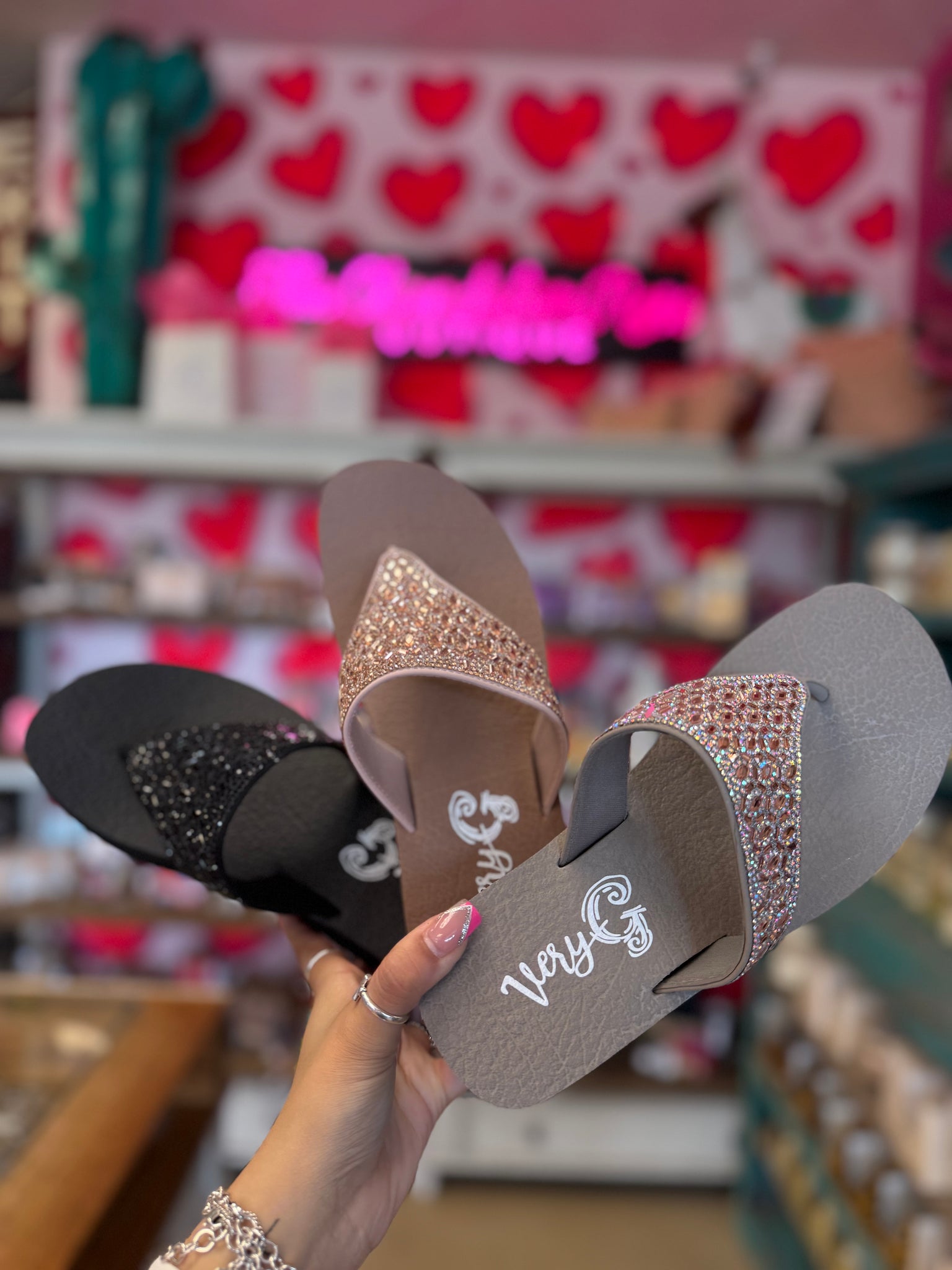 Experience elevated comfort and style with the Very G Napoli Glitz Flatform Flip. This chic beauty combines the casual ease of a flip-flop with a subtle wedge for a flattering lift. The glitzy, patterned strap adds a touch of glamour to your everyday look. Step up your summer style with Very G's blend of laid-back luxury and sparkling design.