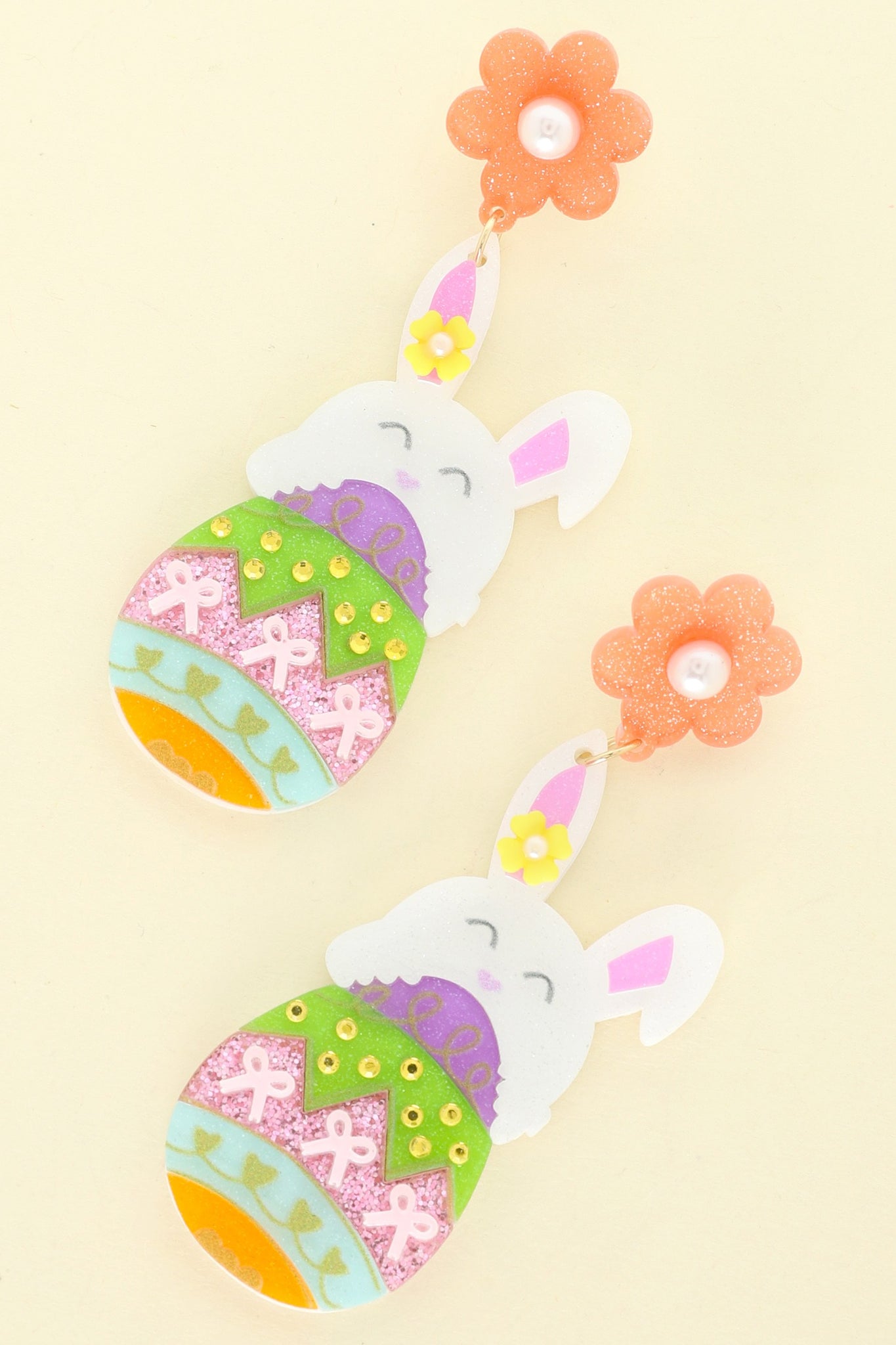FLORAL RABBIT EASTER EGG HUNT ACETATE EARRINGS