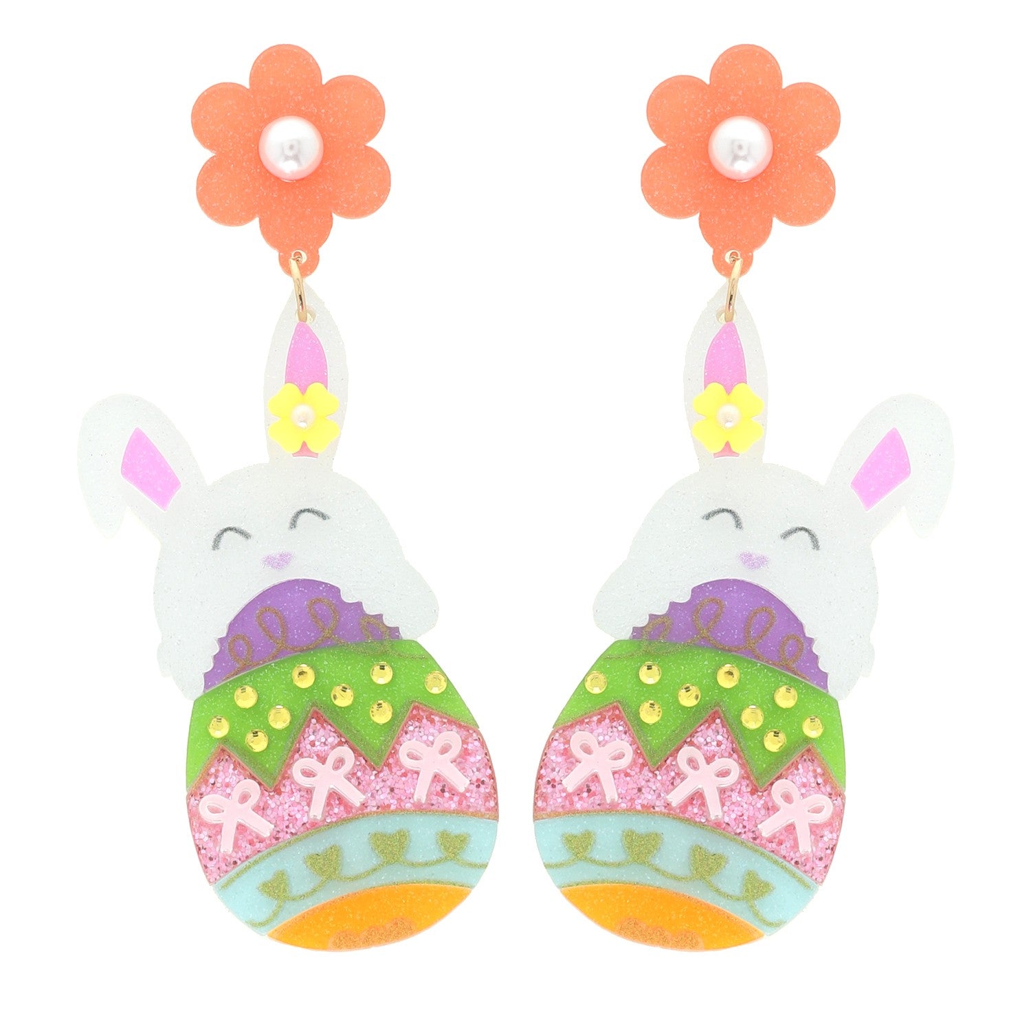 Floral Rabbit Easter Egg Hunt Acetate Earrings