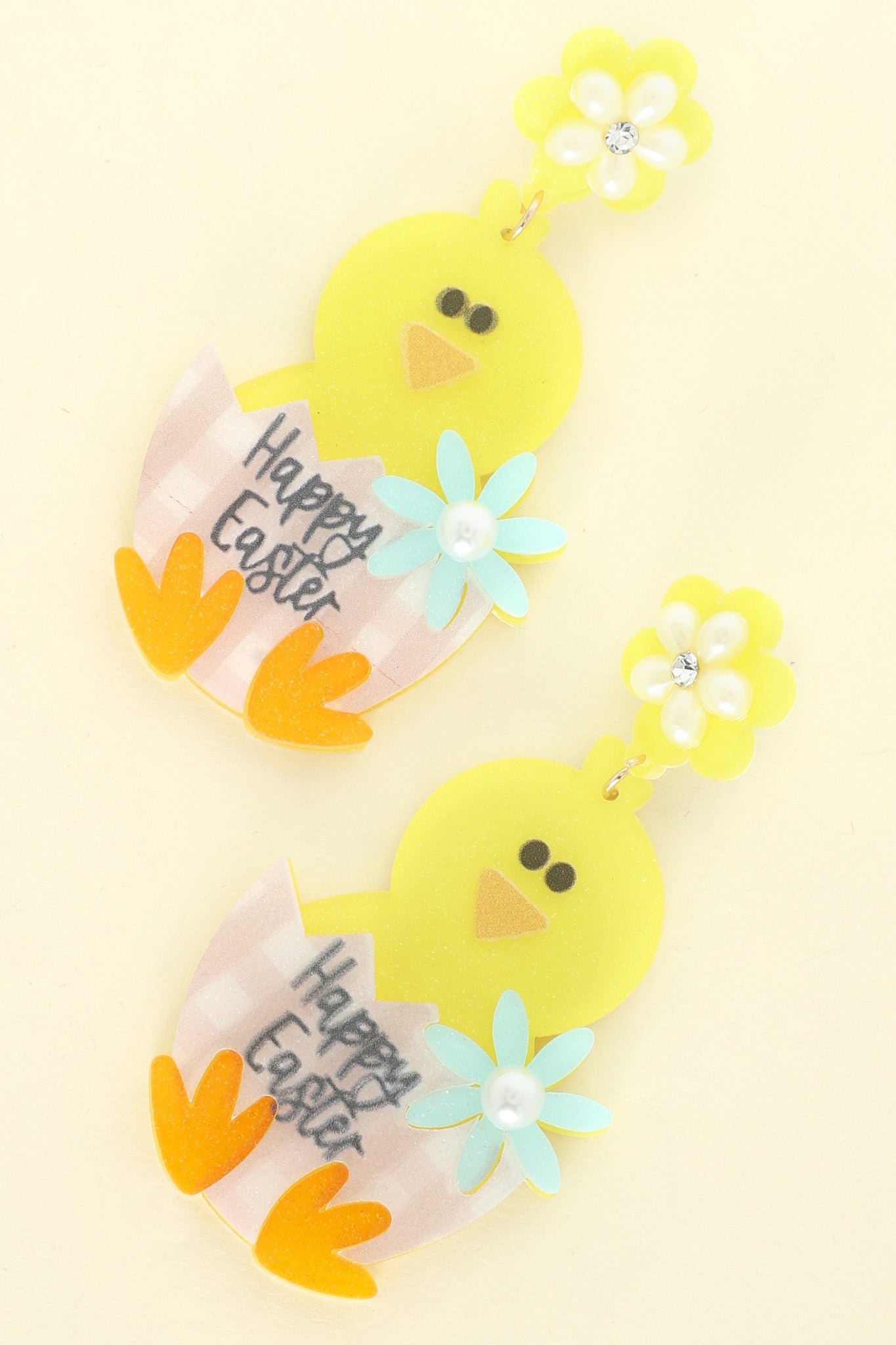 HAPPY EASTER HATCHED CHICK ACETATE EARRINGS
