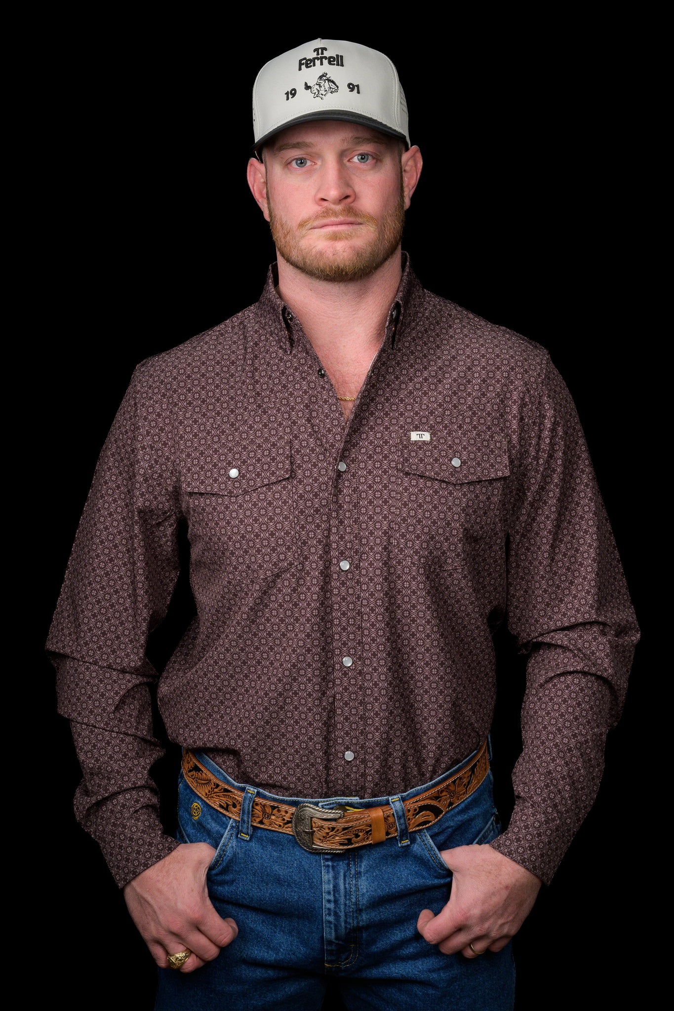 FERRELL MEN'S THE SILAS IN BROWN LONG SLEEVE SNAP SHIRT