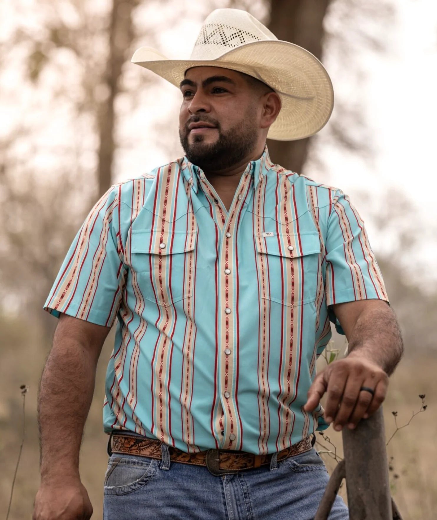 A bright turquoise stripe with subtle contrast detailing, crafted for a sharp western look. Soft-stretch, breathable fabric delivers all-day comfort without sacrificing structure or style.