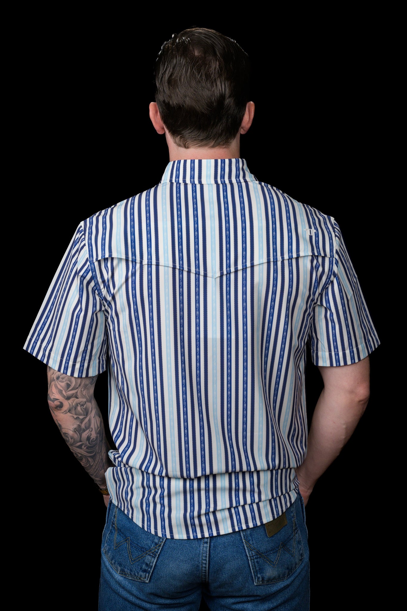 FERRELL MEN'S THE WYATT BLUE SHORT SLEEVE PEARL SNAP SHIRT
