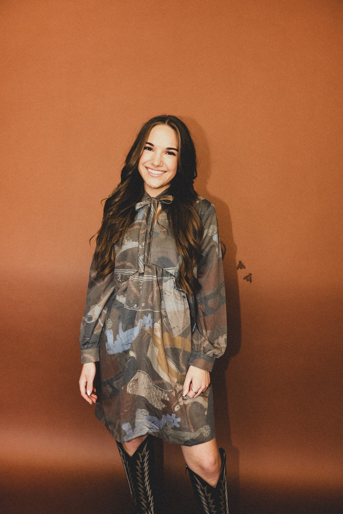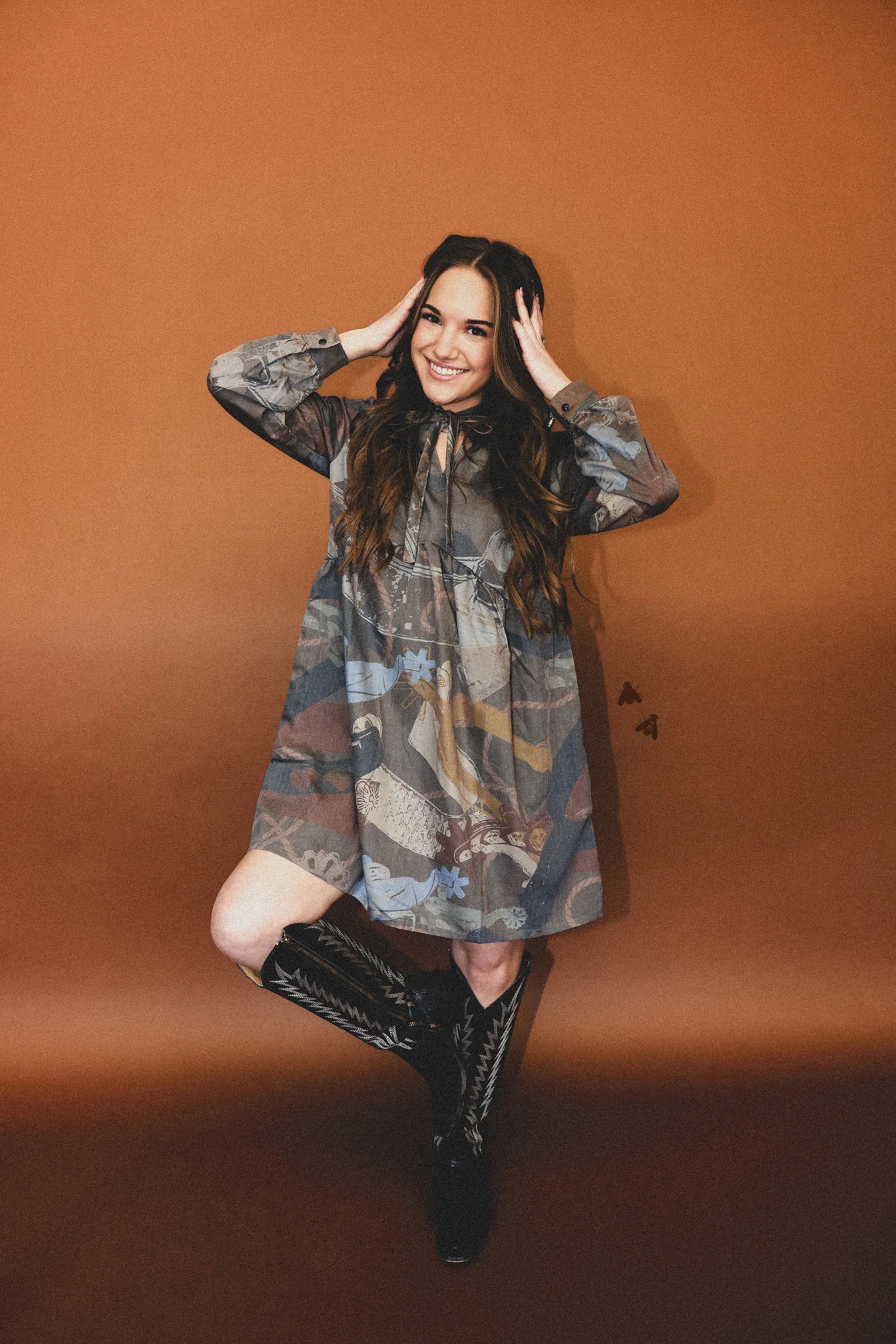 same fabric and feel as our PONY STACK dress that was a HIT. neck tie moment - leave it open or make a cute bow.