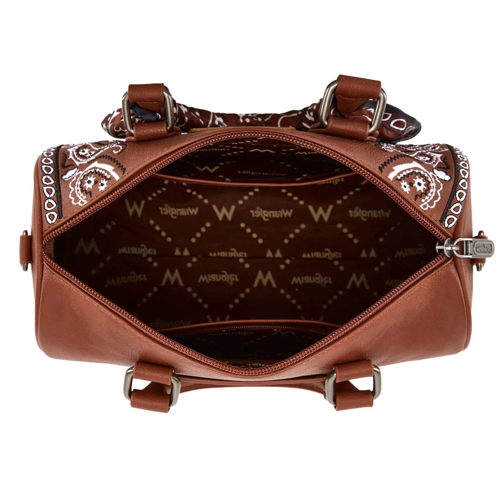 WRANGLER BANDANA PAISLEY PRINT BARREL CROSSBODY BAG - BROWN