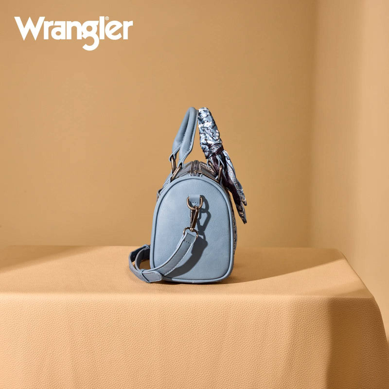 WRANGLER BANDANA PAISLEY PRINT BARREL CROSSBODY BAG - JEAN