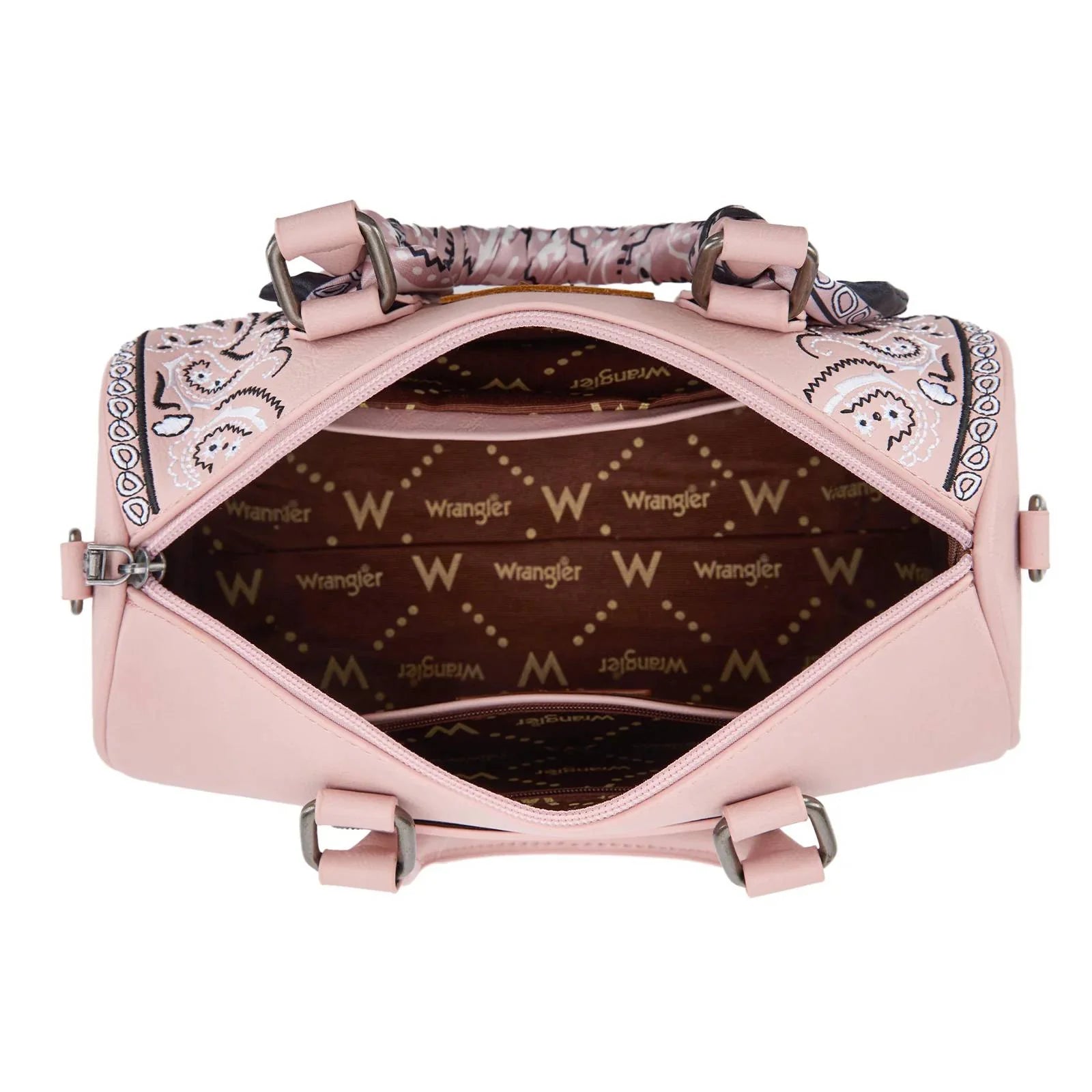 WRANGLER BANDANA PAISLEY PRINT BARREL CROSSBODY BAG - PINK