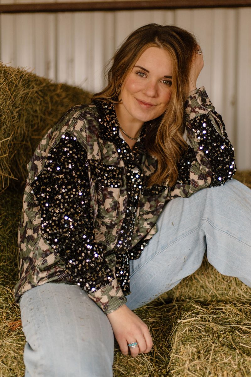 Introducing the Bold and Classy Shacket: the perfect mix of classy camo print and bold sequins. Whether you're feeling adventurous or chic, this shacket has got you covered. Don't camouflage your style - stand out with this unique piece!