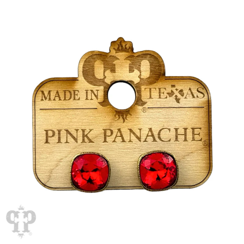 PINK PANACHE 10MM RED STONE BRONZE STUD EARRING - E509BR