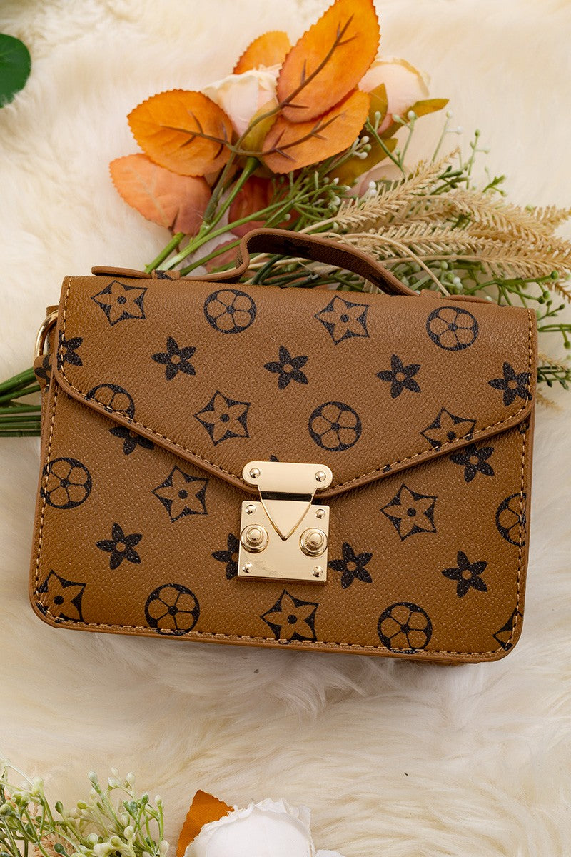 Youth Girls Brown Star Printed Crossbody Purse
