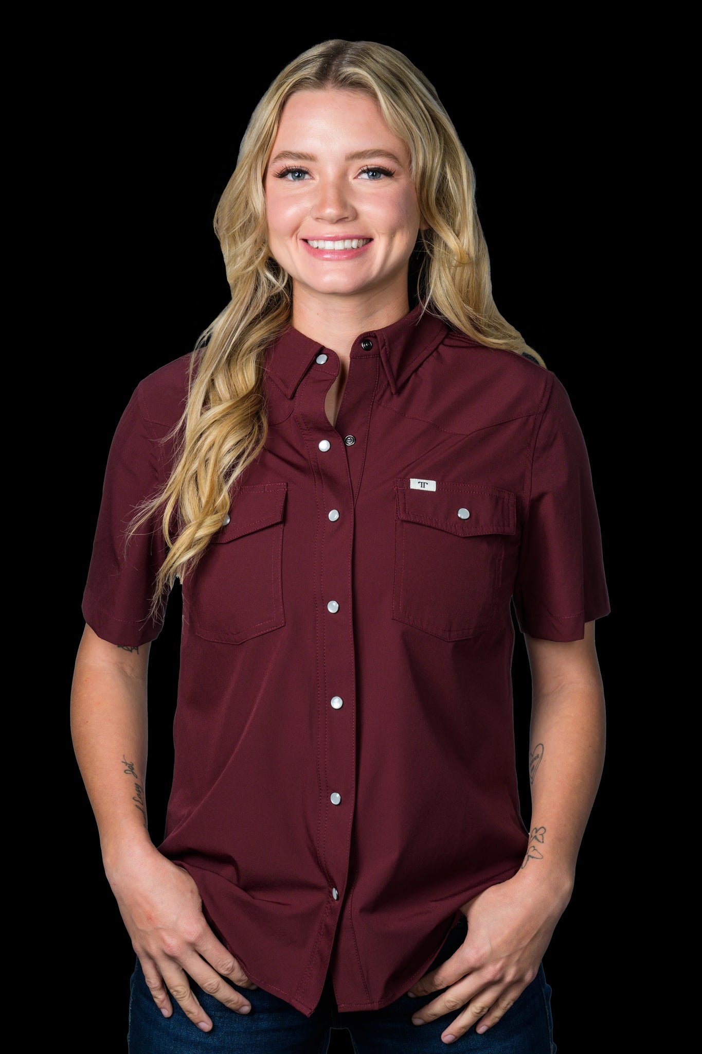 FERRELL WOMEN'S CORE MAROON SHORT SLEEVE SNAP SHIRT