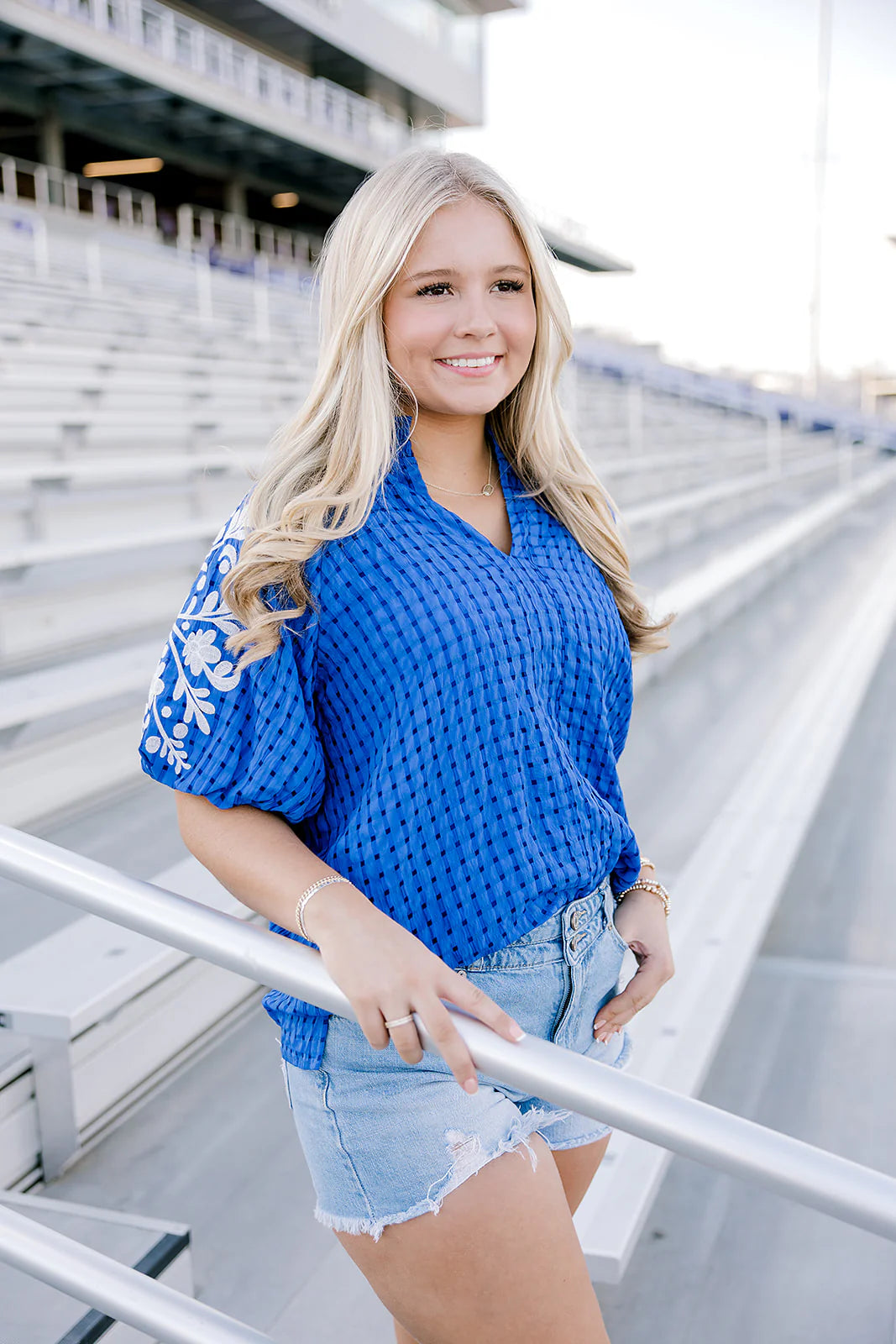Your new go to top for those Friday Night Lights! The Havanah Top is a textured fabric top with beautiful embroidery on the puff sleeve. Pair with jeans and sneakers for your next football game!