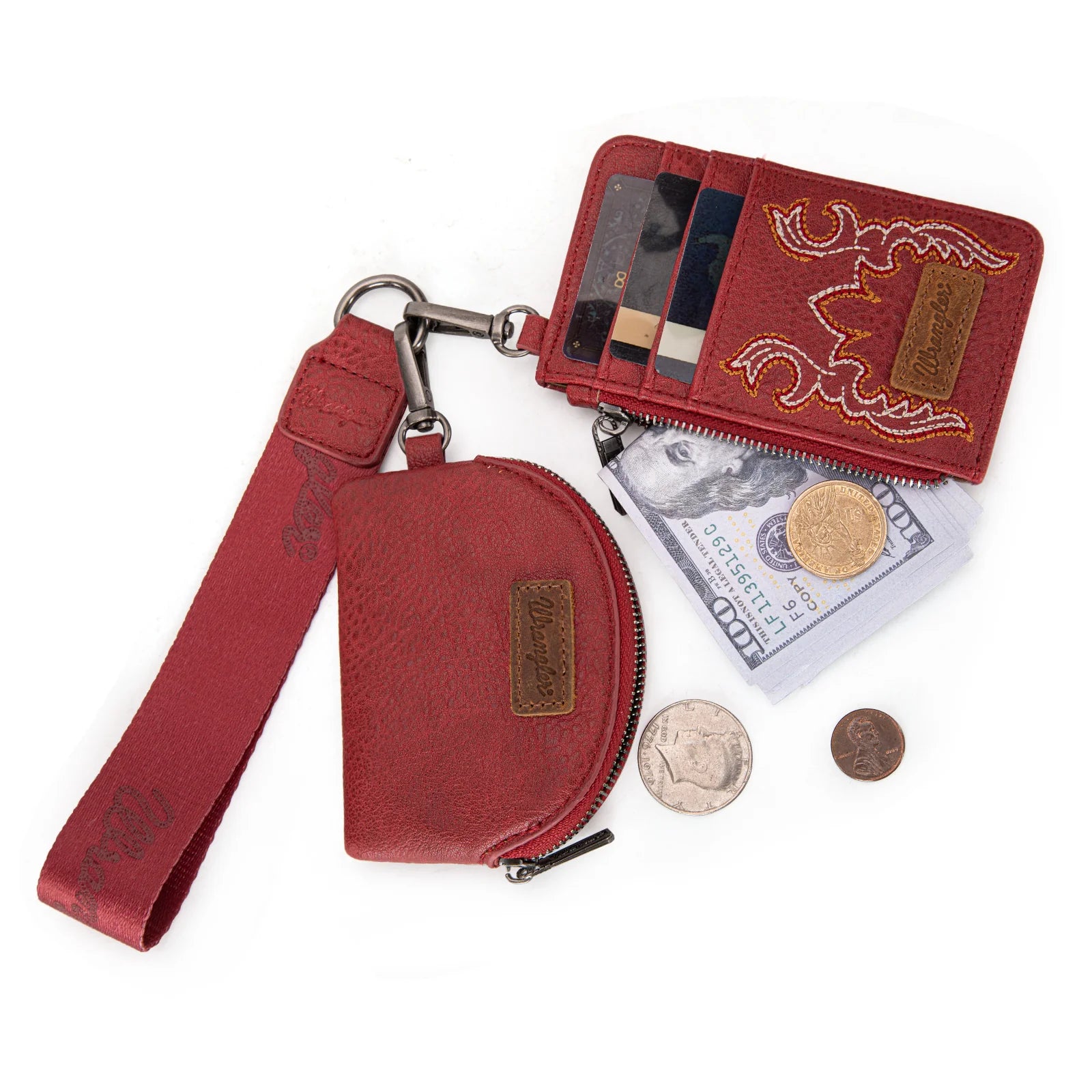 Wrangler Embroidered Dual Pouch Wristlet - Red