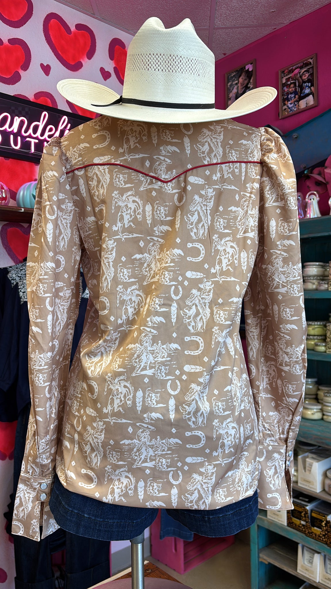 COWBOY FEATHER LONG SLEEVE PEARL SNAP TOP