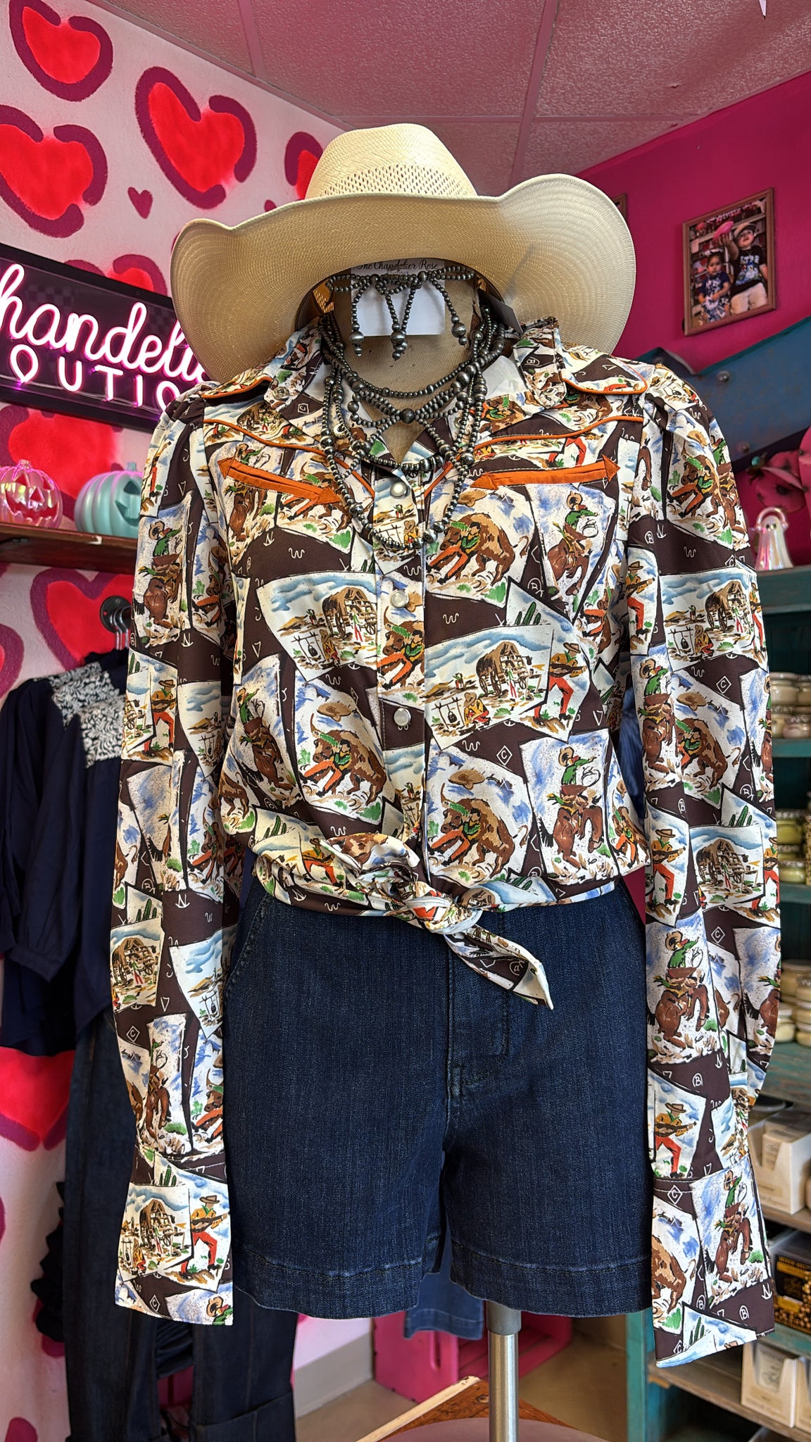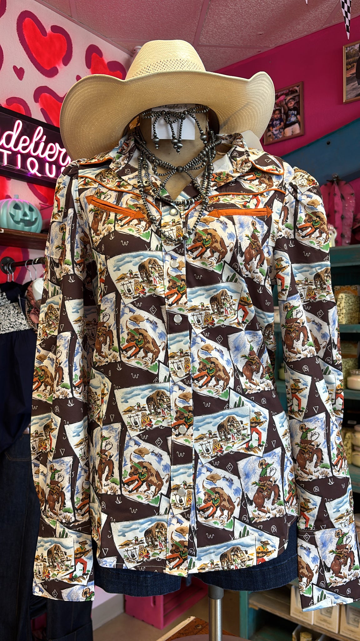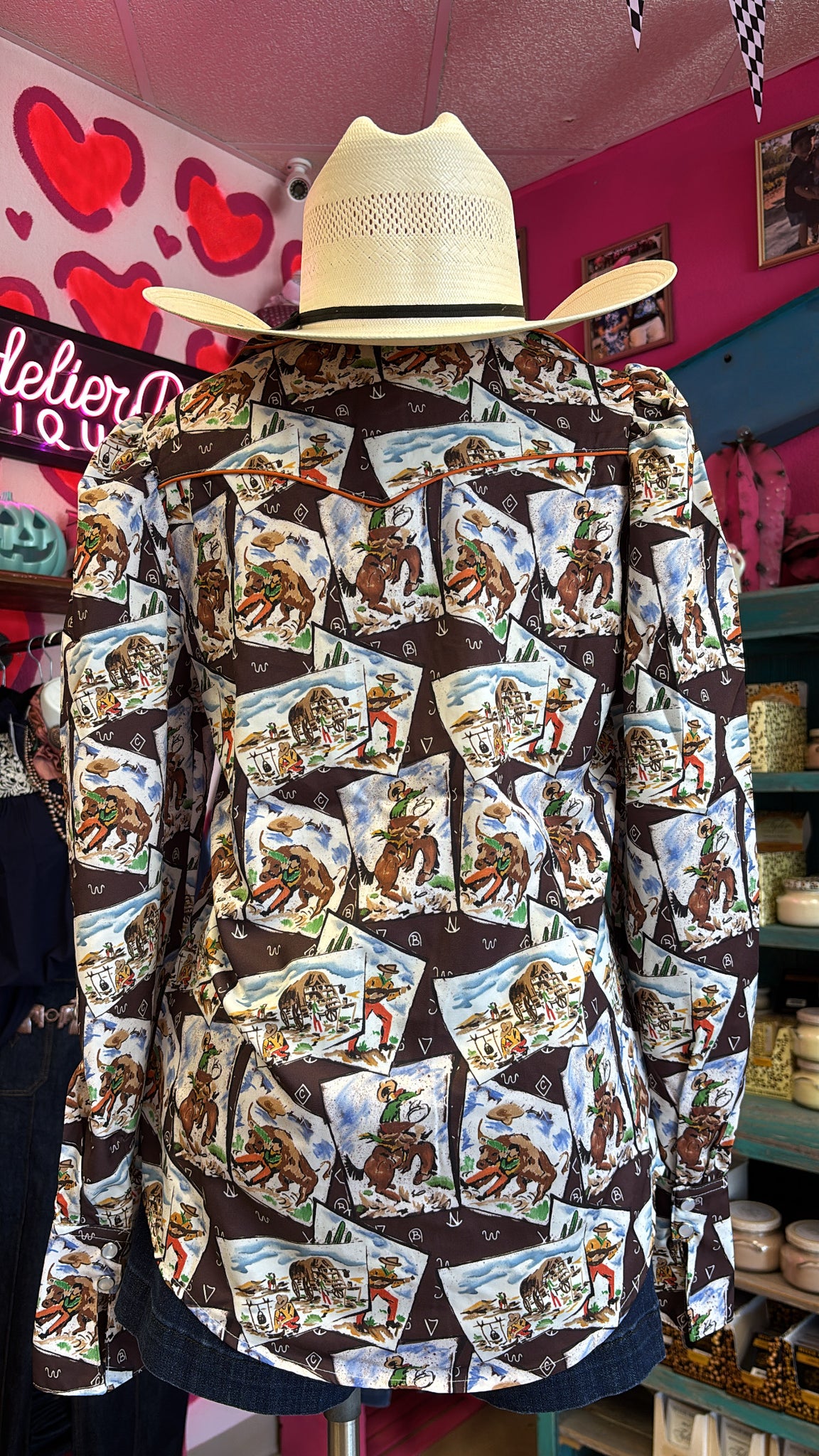 COWBOY STAMP LONG SLEEVE PEARL SNAP TOP