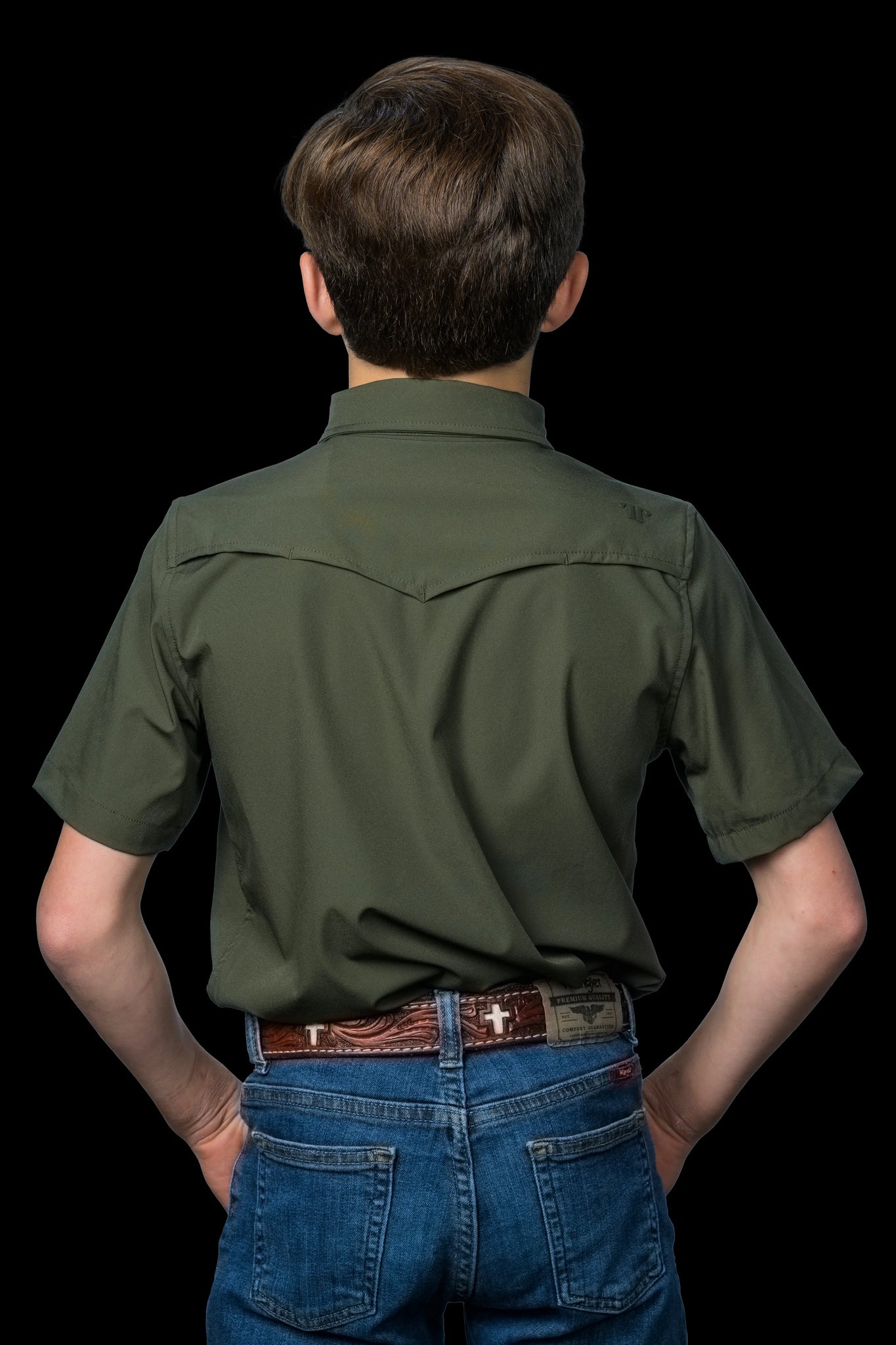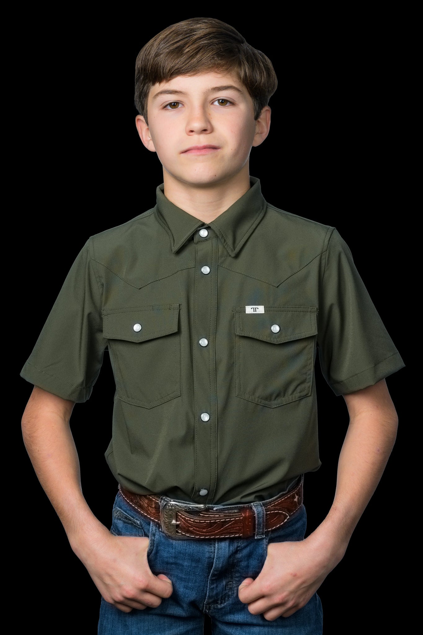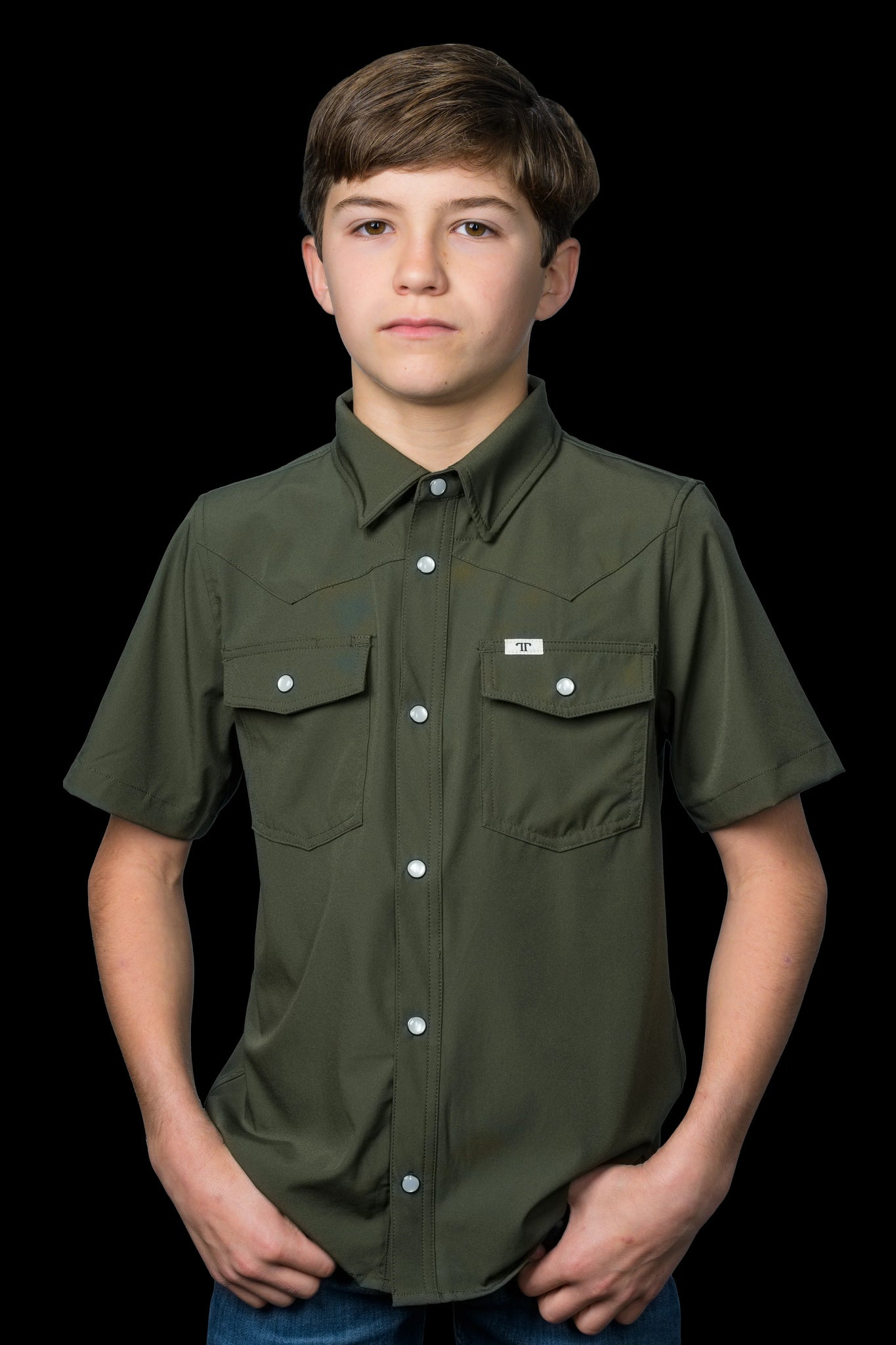 FERRELL KID'S SHORT SLEEVE SNAP SHIRT - OLIVE