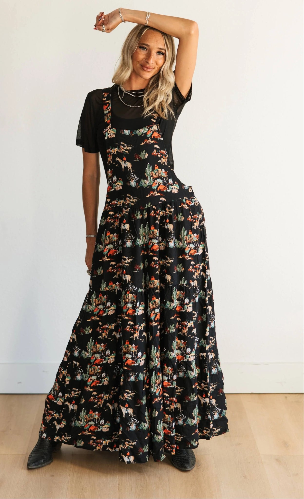 OVERALL RUFFLE ROMPER BLACK WAGON