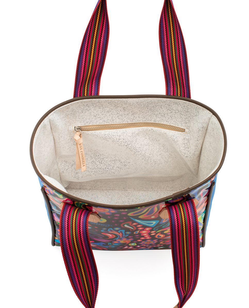 Our Sophie Classic Tote is perfect for life-on-the-go and it packs a statement in ConsuelaCloth™. Topped with comfortable woven handles, this multi-functional tote is trimmed in natural leather and crafted to hold its shape. Our tote features a roomy interior and pockets; ideal for carrying your laptop, keys, and phone.