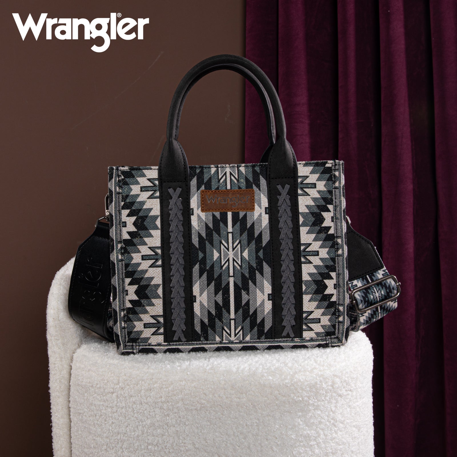 Wrangler Southwestern Pattern Dual Sided Print -Tote/Crossbody - BLACK